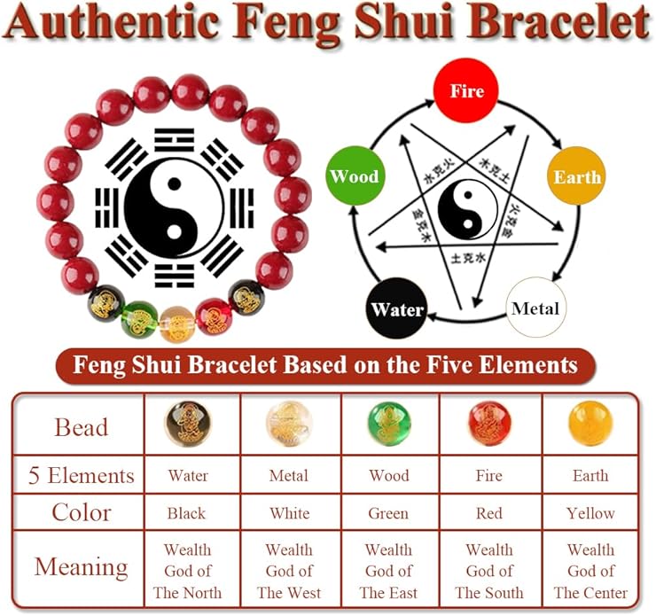 - Chinese Feng Shui Wealth Bracelet: Five beads of different colors represent five different wealth gods, each with its own efficacy, allowing you to have a smooth career, achieve wealth growth, and avoid unexpected expenses.
